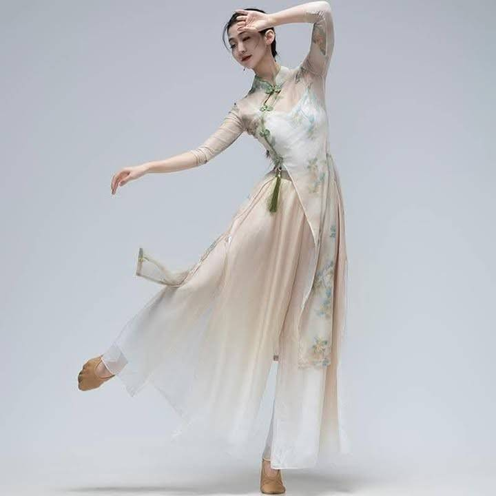 ชุดจีน (สีเขียว-ชมพู-ครีม)